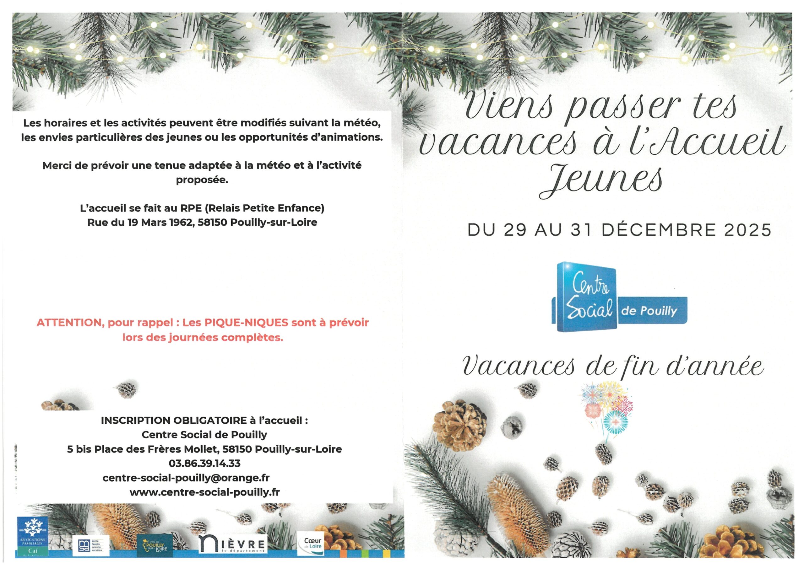 Déc 19 Viens passer tes vacances à l’Accueil Jeunes du 29 au 31 décembre 2025. Cliquez sur l’image pour l’agrandir Cliquez sur l’image pour l’agrandir ← Précédent Suivant →