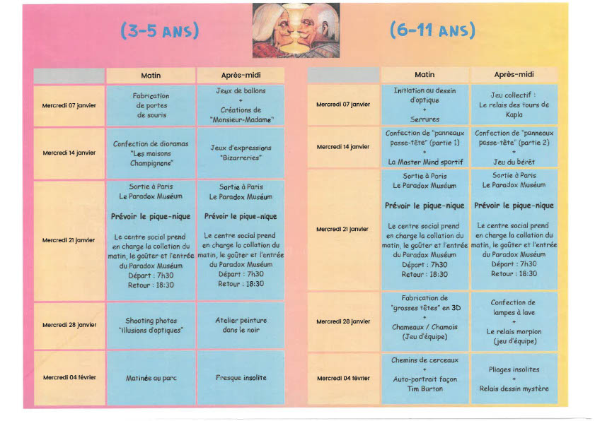 Accueils de Loisirs de Pouilly les mercredis du 7 janvier au 4 février 2026.