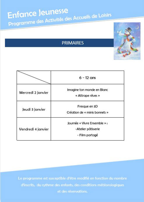 Déc 15 Programme des vacances de Janvier Programme Janvier 2019 Image 3 parmi 4 ← Précédent Suivant →